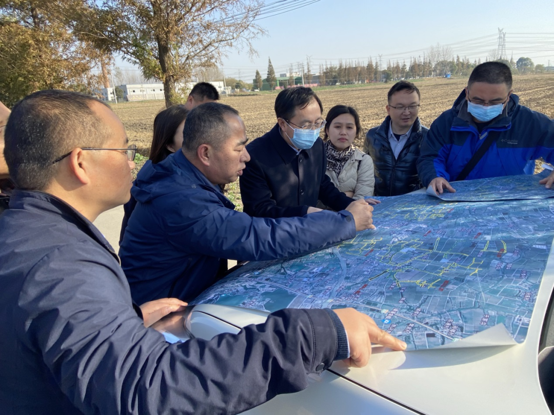 ▲石有文(右四)在项目现场踏勘