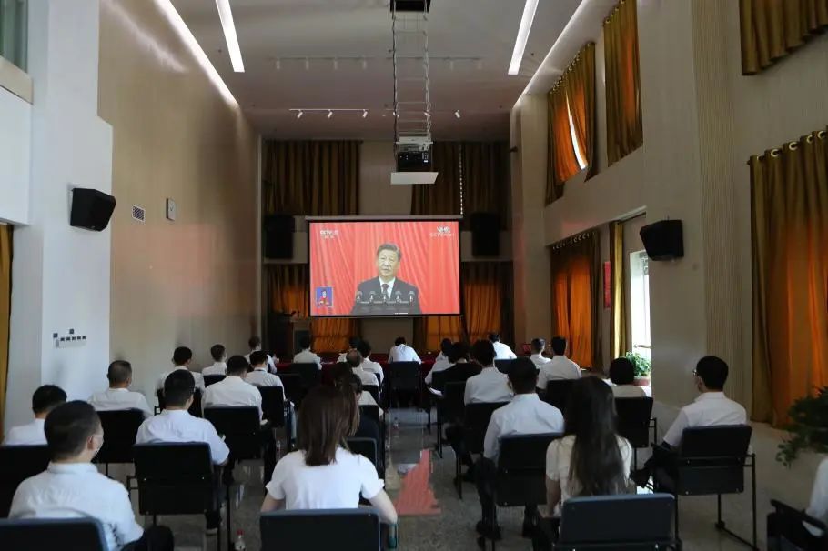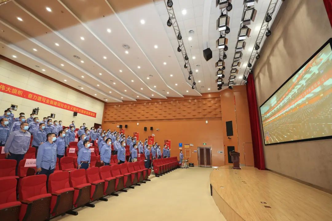 中304永利电子陆丰核电有限公司党委组织公司干部员工近300人,,,,,,,,划分在厂前区办公楼聚会室、文宣中心报告厅、项目施工现场等地整体寓目了大会,,,,,,,,聆听习近平总书记主要讲话。。。。。。。。