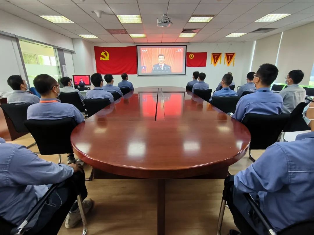 广西防城港核电有限公司各党支部、分工会、团支部团结清静生产、工程建设事情现实,,,,,,,,在事情现场、聚会室等20多个视频点组织约600名党员干部员工收看大会盛况直播。。。。。。。。