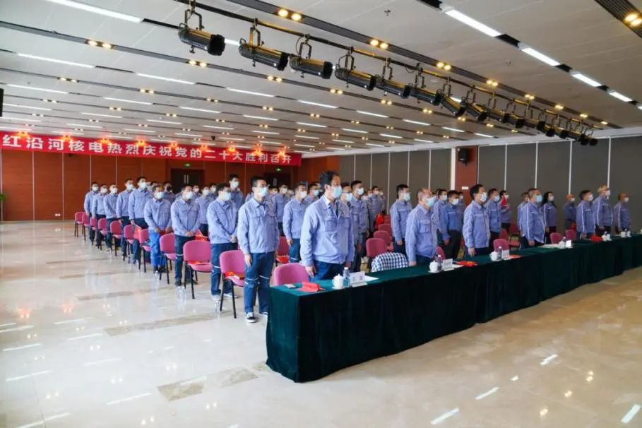 辽宁红沿河核电有限公司团结事情现实,,,,,,,,在包管机组清静生产的条件下,,,,,,,,组织宽大干部员工收看党的二十大开幕直播,,,,,,,,共设置21个集中寓目视频点,,,,,,,,近400名党员集中寓目直播,,,,,,,,其余410余名党员自行收听收看,,,,,,,,第一时间学习习近平总书记主要讲话精神。。。。。。。。
