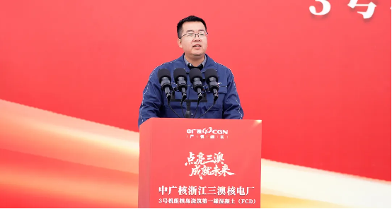 李宁代表温州市委、市政府,,,,,,,对3号机组主体工程开工建设体现祝贺。。。。。他指出,,,,,,,3号机组核岛FCD标记着三澳核电二期项目建设迈入提速新阶段,,,,,,,对温州加速打造全省新型能源系统先行树模区、天下新能源产能中心和应用树模都会具有主要意义,,,,,,,温州市委、市政府将始终秉持“靠前效劳、精准包管”理念,,,,,,,为项目保驾护航,,,,,,,希望苍南核电高标准、严要求做好工程清静、质量和进度管控,,,,,,,将项目打造成为经得起历史和实践磨练的精品工程、阳光工程、央地相助树模工程,,,,,,,为国家新型能源系统建设孝顺温州实力。。。。。